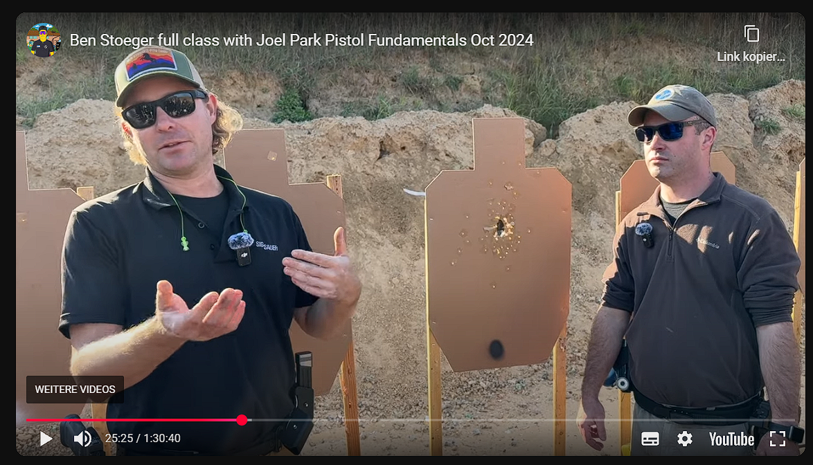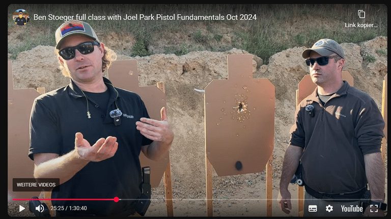 Ben Stoeger, mehrfacher IPSC-Weltmeister und USPSA-Nationals-Champion, veröffentlicht regelmäßig komplette Kursvideos – kostenlos, frei zugänglich und jederzeit abrufbar auf YouTube. Gefilmt werden diese „Full Class“-Videos während echter Kurse, die Ben gemeinsam mit Kollegen wie Joel Park oder Matt Pranka durchführt.