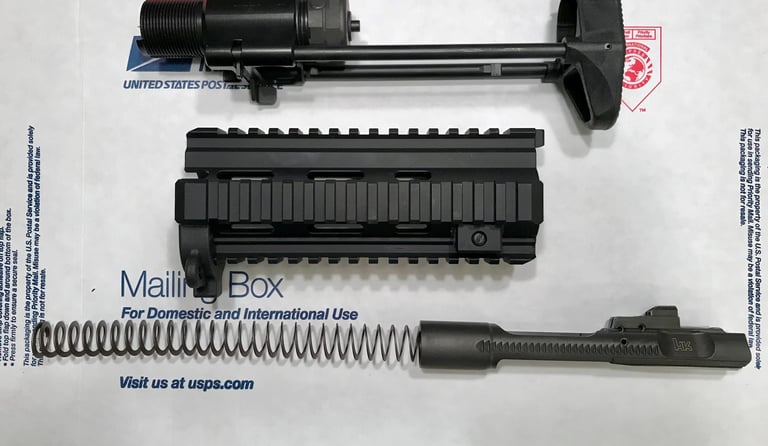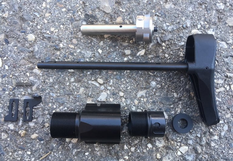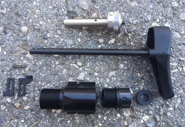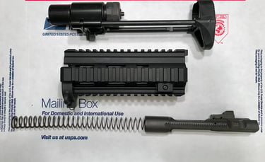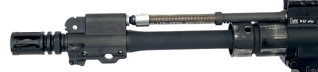 Abbildung 7: Zusammenstellung von charakteristischen Teilen einer HK416 PDW. Unten im Bild ein Beispiel der Pufferfeder, die in den Verschlussträger hineinragt. Quelle: UMP45 ENTRY, hkpro.com, 2018, https://www.hkpro.com/threads/hk416-mr556-pdw-stock-opinions-and-advice.442129/