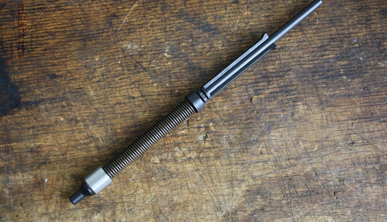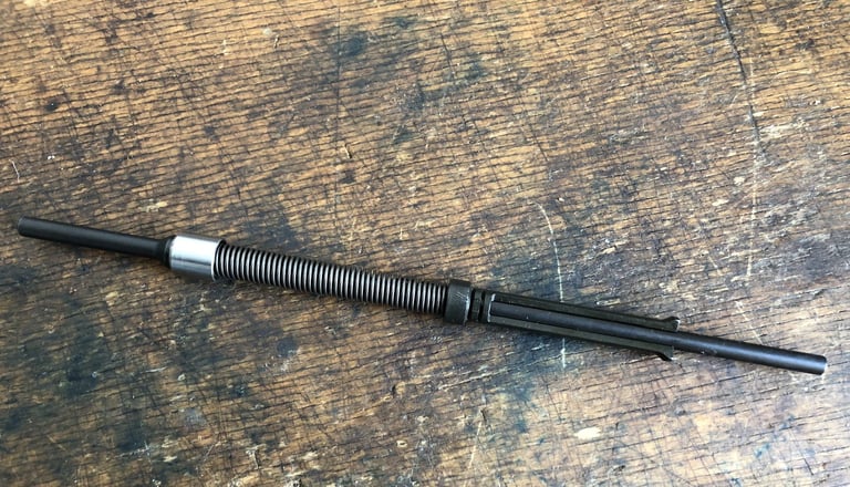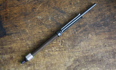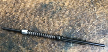 Abbildung 8: Im oberen Teil des Bildes ist der Gaskolben des Gasgestänges einer standard HK416 zu sehen. Unten ist das Gasgestänge abgebildet. Das linke Ende des Gestänges wird ca. 10 mm in das hintere Ende des Gaskolbens eingeführt. Quelle Oben: ZIB-Militaria, 2025, https://www.zib-militaria.de/epages/61431412.sf/de_DE/?ObjectPath=/Shops/61431412/Products/90134. Quelle Unten: ZIB-Militaria, 2025, https://www.zib-militaria.de/epages/61431412.sf/de_DE/?ObjectPath=/Shops/61431412/Products/90504
