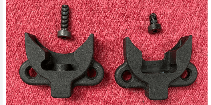 Abbildung 12: Vergleich der Hand Stops der G36C und UMP links und dem Handstop der HK416C rechts. Bei der Variante der HK416C ist der Durchbruch in richtung Mündung größer, um Platz für die Bajonettaufnahme der Gasabnahme zu schaffen. Zusätzlich fehlt die Schraubenführung, wie links bei der Variante des G36C, da der Hand Stop direkt in ein Gewinde in der Picatinny Schiene geschraunt wird. Quelle: ctyatty, HKPro.com, 2022, https://www.hkpro.com/threads/handstop-for-416c-quad-rail.549359/