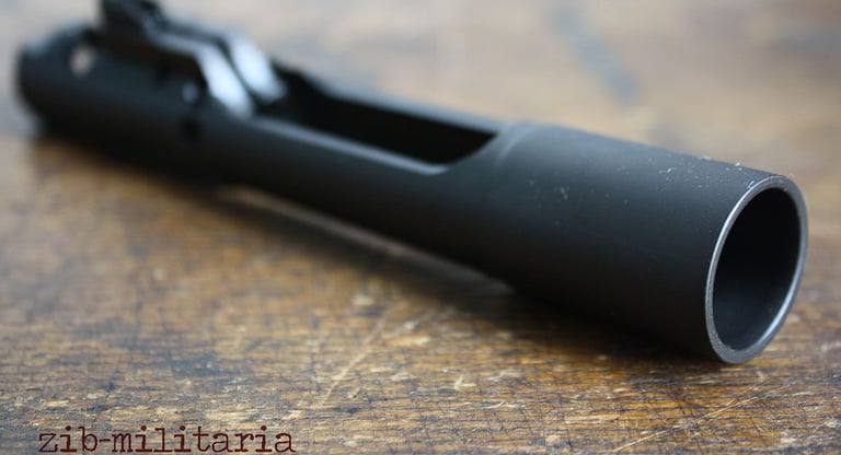 Abbildung 4: Hinteres Ende des Verschlussträgers einer standard HK416. Am Boden des Verschlussträgers ist die Nut erkennbar, um über den Buffer Stop zu gleiten. Quelle: ZIB-Militaria, 2025, https://www.zib-militaria.de/HK416-Verschlusstraeger-HK