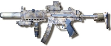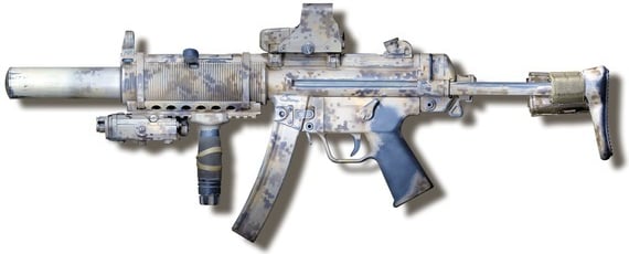 Abbildung 3: Eine Airsoft wie sie von German Gun Works vertrieben wurde. Inspiriert von Bildern der DEVGRU der Navy SEALs in Einsätzen in den 2000er Jahren. Auffällig ist besonders die Lackierung in AOR1, dem Tarnmuster der SEALs in diesem Zeitraum. Quelle: German Gun Works, 2015, https://www.tapatalk.com/groups/onesixforum/mp5sd-devgru-t3860.html