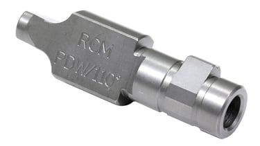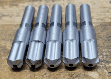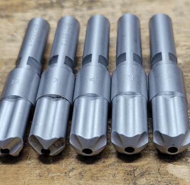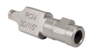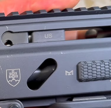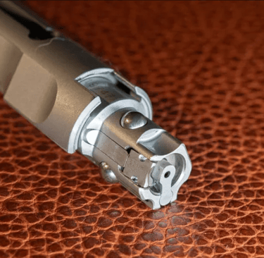 Abbildung 12: Steuerstücke für die HK MP5 von RCM mit verschiedenen Winkeln der Steuerflächen. Je nach Konfiguration der MP5-Modelle ist eine eigene Abstimmung der Verschlussgruppe nötig. Hier sind jeweils Steuerstücke für die HK MP5 SD mit geportetem Lauf und Schalldämpfer (115°) und einer kurzen PDW-Variante (110°) zu sehen. Durch die verschiedenen Winkel der Steuerstücke wird der Weg des Steuerstücks bestimmt, um die Rollen zu entriegeln. Quelle: RTG Parts, https://www.robertrtg.com/rcm-mp5k-locking-piece-110-degree, 2025